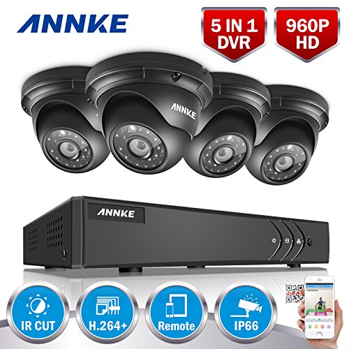 ANNKE 8CH 960P CCTV Camera System, 1080N/1080P Lite HD TVI Security DVR with 4x 960P 1.3MP Indoor/Outdoor Camera, Super Night Vision, IP66 Weatherproof, No HDD