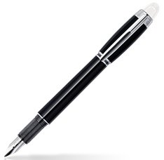 -. Feature : Fountain Pen with medium nib / Black precious resin and highly polished platinum-plated clip with embossed Montblanc lettering and individual serial number / Hand-crafted rhodium-plated 14 K gold nib