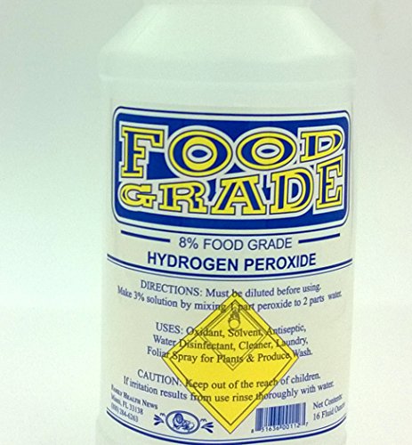 FOOD GRADE 8% Hydrogen Peroxide solution is good for disinfecting water, a foliar spray, chemical free cleaning and bleaching. 1 Pint - 16 oz.