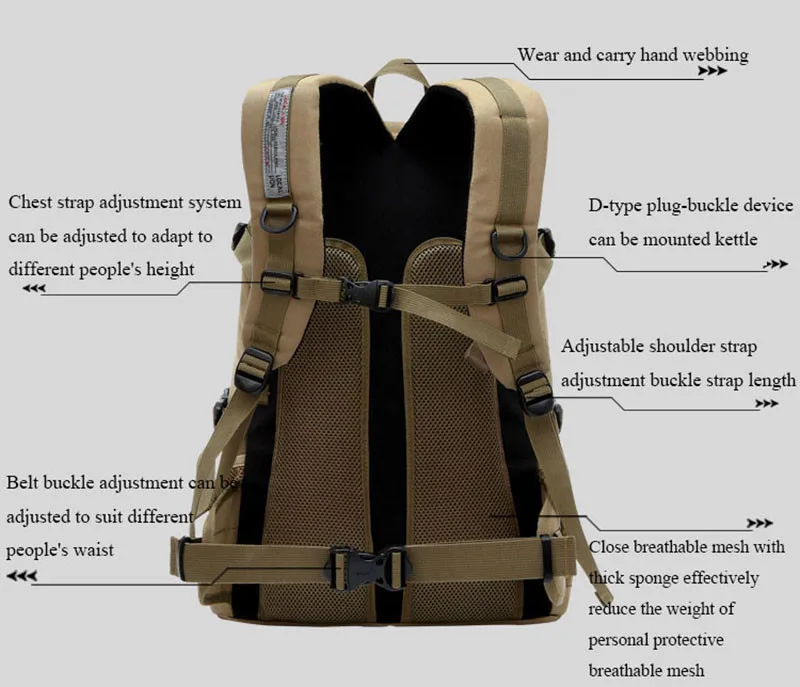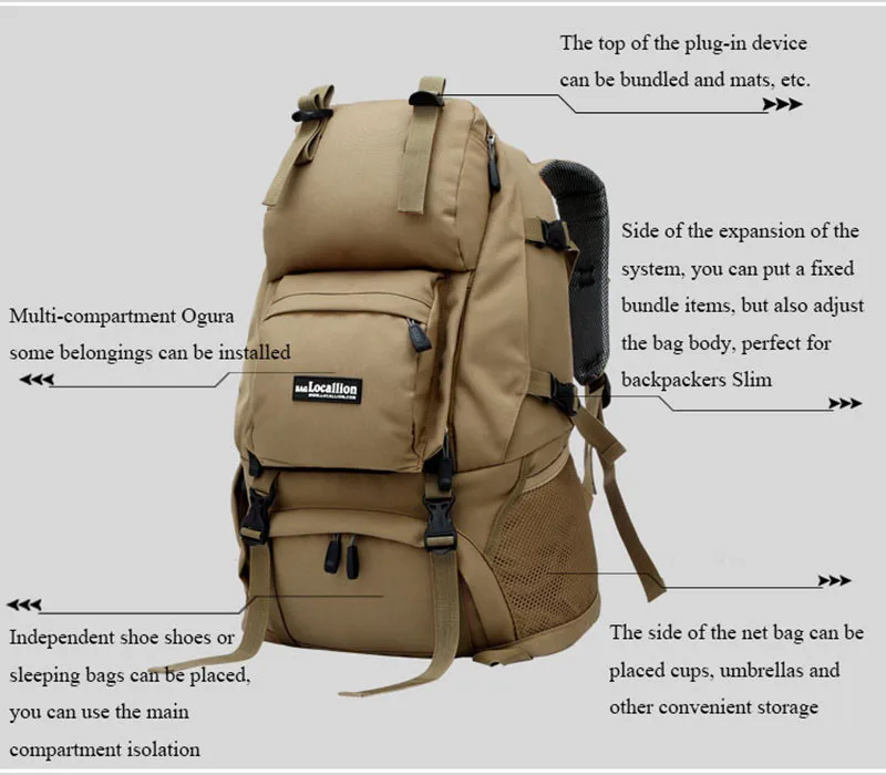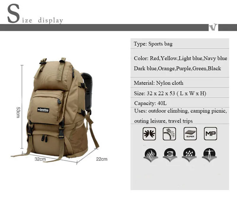LOCAL LION Mountaineering Outdoor Travel Shoulder Bag Student Backpack Men and Women 40L Hiking Traveling Backpack Tourism