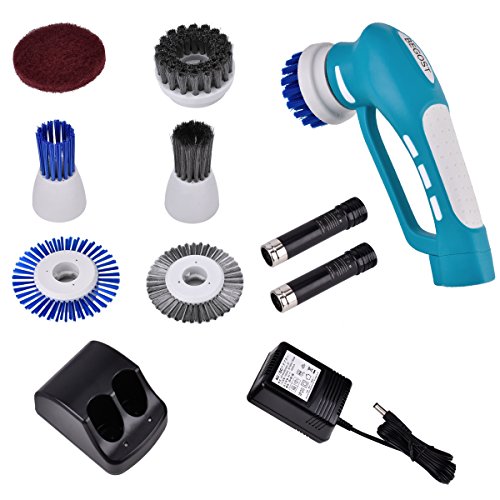 Begost Cordless Household Portable Handheld Power Scrubber for Bathroom, Kitchen,Multiple Cleanings with 2 Rechargeable Batteries and 7 Brushes,Blue