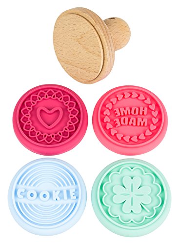 - Add a personal note to your cookies with our cookie stamps. Simply roll out the dough, stamp it and use the cutter ring to cut out the cookies. Cookie stamp set, consisting of a stamp, a cookie cutter ring and four stamp inserts made of silicone Four motifs: “ heart ", " Homemade ", a " Cookie " and " Clover " Silicone stamp inserts: completely food safe and taste neutral Motif diameter approx. 5.5 cm/ 1.9 Inches