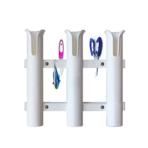-. Feature : Durable 3 pole plastic fishing rod holder / Space-saving, integrated slots for pliers, tools, plastic baits and other accessories storage / 1 piece molded construction, tough and anti-corrosion / Suitable for freshwater and saltwater use / Vertical side mounts directly on your boat, truck or wall