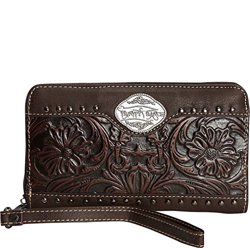 -. Title : Trinity Ranch Floral Tooled Leather Wristlet Wallet -Coffee