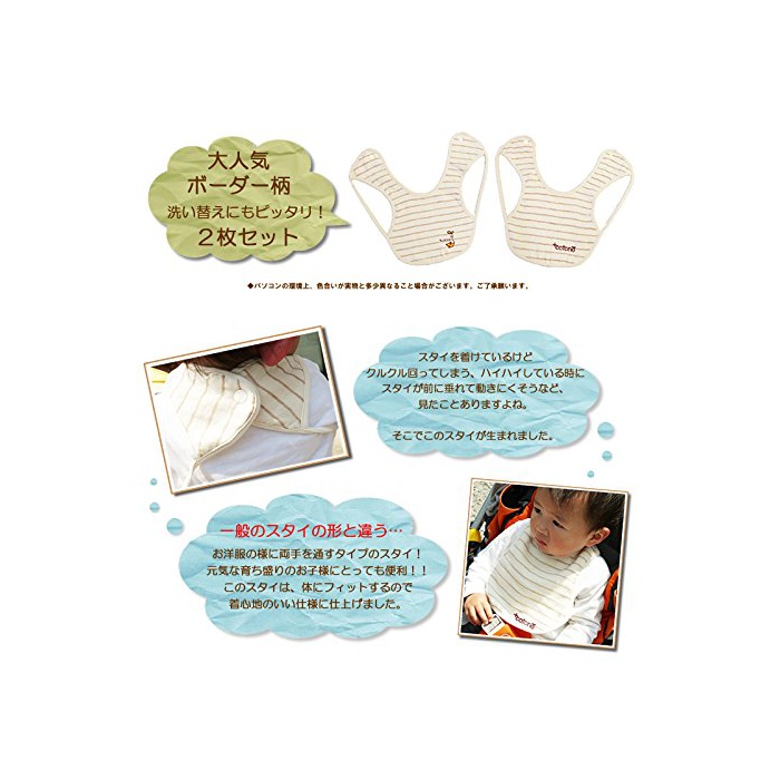 #등 # 것《―》군요 오거닉 코튼 보더 거즈 스타이(유아용 턱받이)2 매세트 일본제