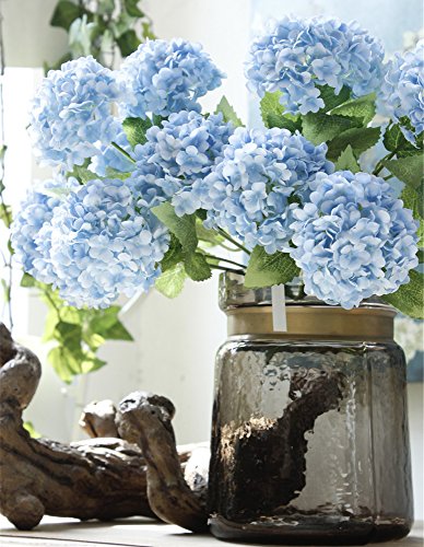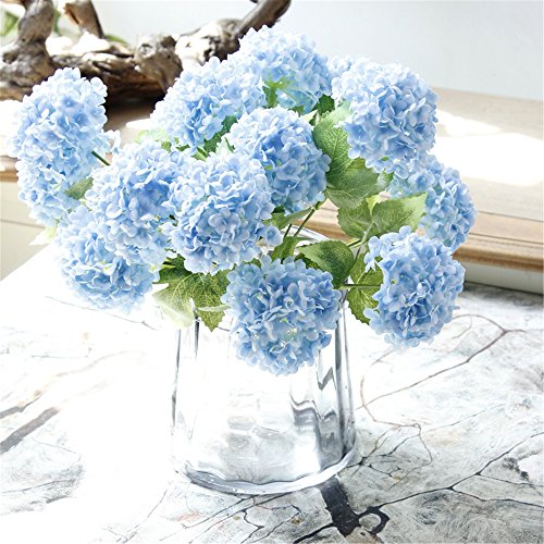 Greentime Artificial Flowers 13" Silk 7 Head Hydrangea Bouquet for Wedding, Room, Home, Hotel, Party Decoration and Holiday Gift (Blue)