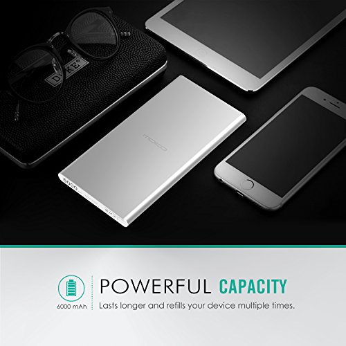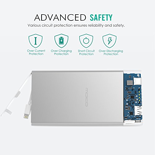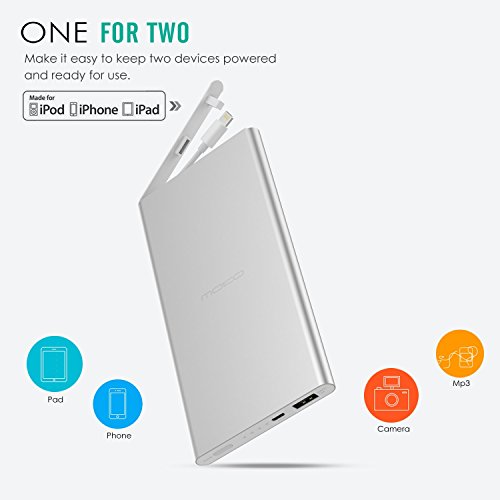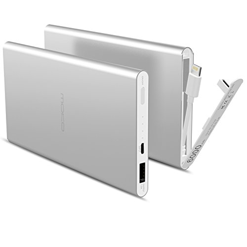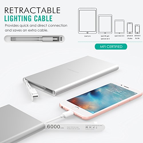 -. Title : [Built-in Lightning Cable] MoKo 6000mAh Portable Power Bank, Ultra Slim Compact External Battery Pack Charger with Apple MFi Certified Lightning Connector, for iPhone 7 /SE /6S Plus, iPad Pro, SILVER