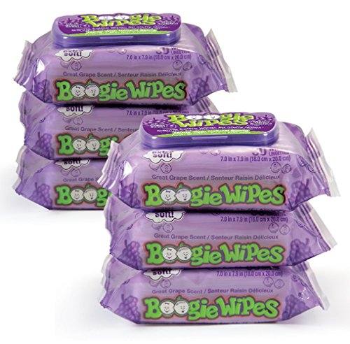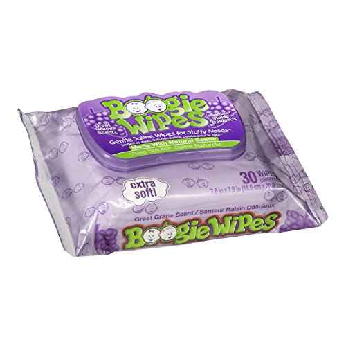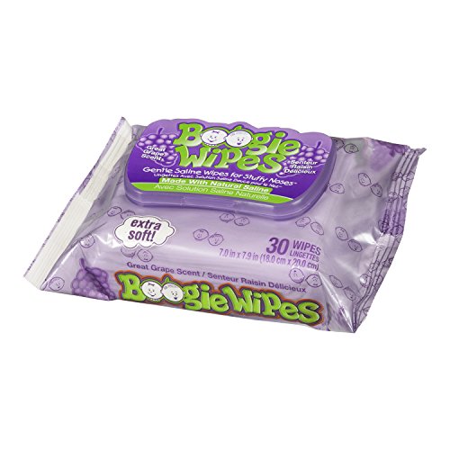 Boogie Wipes Soft Natural Saline Wet Tissues for Baby and Kids Sensitive Nose, Hand and Face with Moisturizing Aloe, Chamomile and Vitamin E, Grape...
