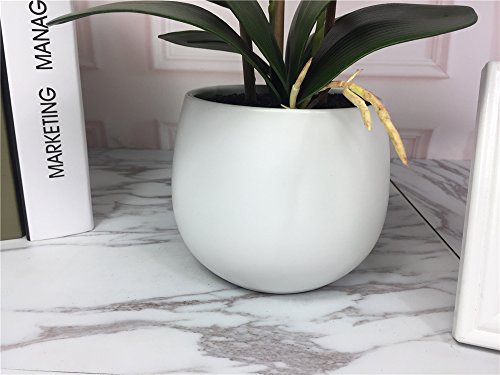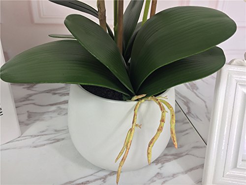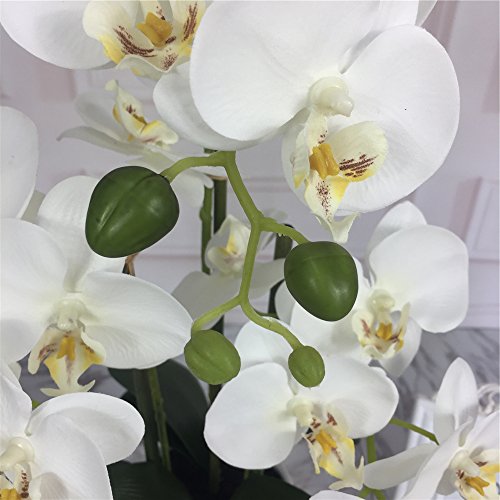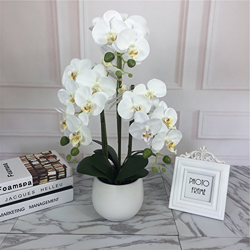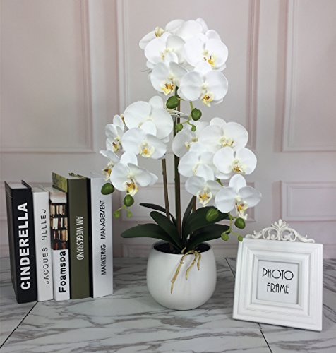 Tall Artificial Flowers with Vase,Realistic Silk Orchid in Ceramic Pot,Three Stems Large Artificial Flower Arrangements for Home Decoration