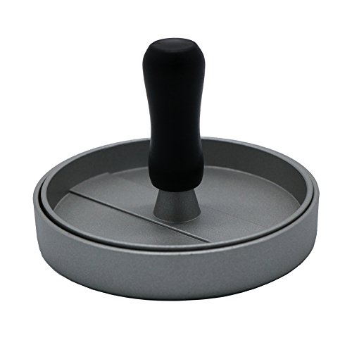 - HAMBURGER MEAT PRESS HIGH QUALITY: this metal hamburger mold made of tough aluminum is light but far sturdier than cheap plastic molds; the wooden handle top can double as a burger press for the grill or stvetop.