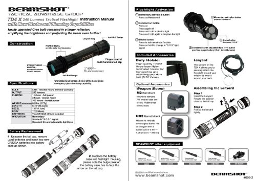 BEAMSHOT TD4X Tactical Flashlight Includes 2 CR123A Batteries,Holster(fits any Molle System) and Lanyard, Beam up to 200 yards at night