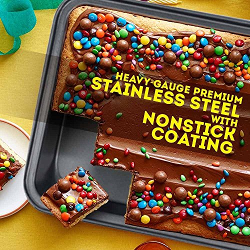 - PROFESSIONAL BROWNIE CAKE PAN - We offer you brownie-baking experience like no other! This rectangular pan lets the heat to spread evenly, creating brownies with gooey center & crisp edges. Also useful for making cookies, pies, and more!