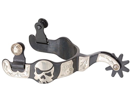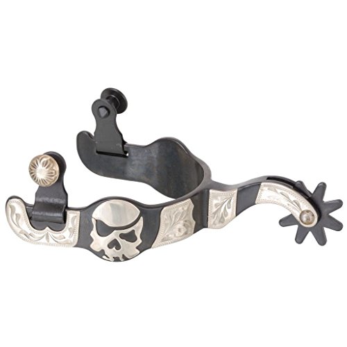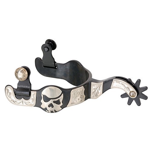 Kelly Silver Star Men's Black Steel Spurs w/ Engraved Silver Skull Overlay - Black