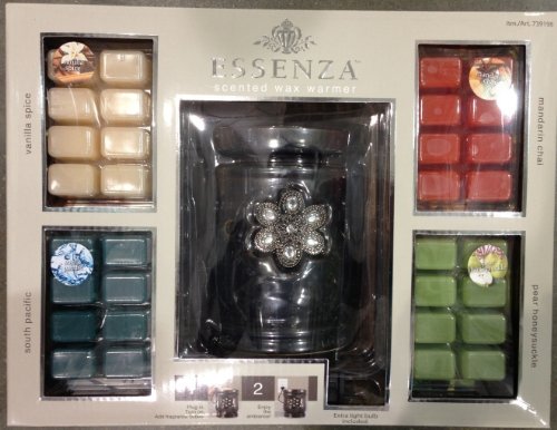 Essenza Scented Wax Warmer with 4 Scents Mandarin Chai, Pear Honeysuckle, Vanilla Spice and South Pacific Lights Up