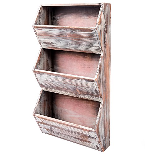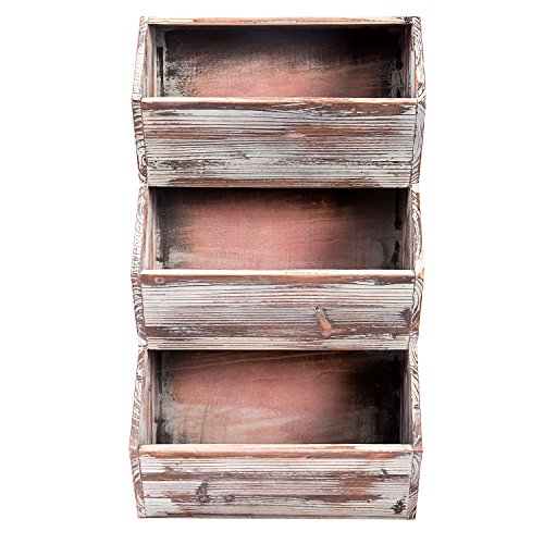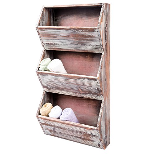 3 Tier 30 inches Rustic Torched Wood Wall Mounted Storage Organizer Rack, Hanging Multipurpose Open Bins