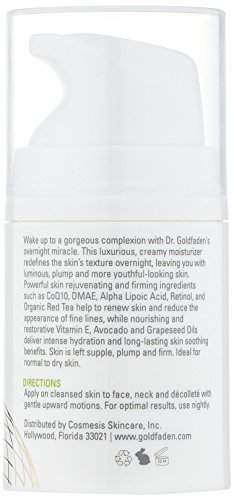 Wake up to a gorgeous complexion with Dr. Goldfaden's overnight miracle. This luxurious, creamy moisturizer redefines the skin's texture overnight, leaving you with luminous, plump and more youthful-looking skin. Powerful skin rejuvenating and firming ingredients such as CoQ10, DMAE, alpha lipoic acid, retinol, and organic red tea help to renew skin and reduce the appearance of fine lines, while nourishing and restorative vitamin E, avocado and grape seed oils deliver intense hydration and long-lasting skin soothing benefits. Skin is left supple, plump and firm. Ideal for normal to dry skin.