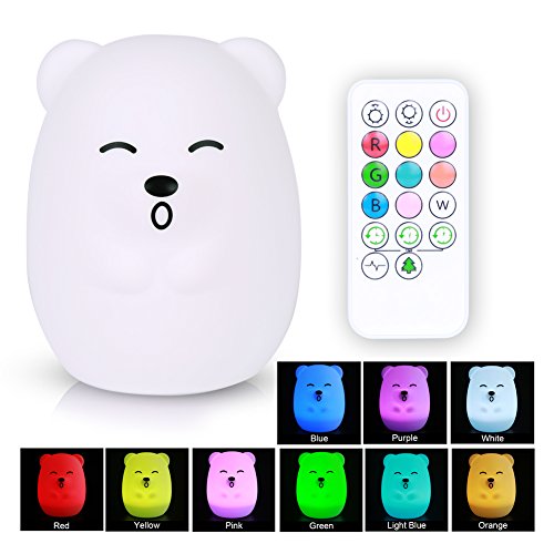 LED Baby Night Light XFunino Soft Silicone Night Lamp Kids Christmas Lights Children Nursery Lamps RGB Tap Control + Remote Control, 9 Colors Changing...