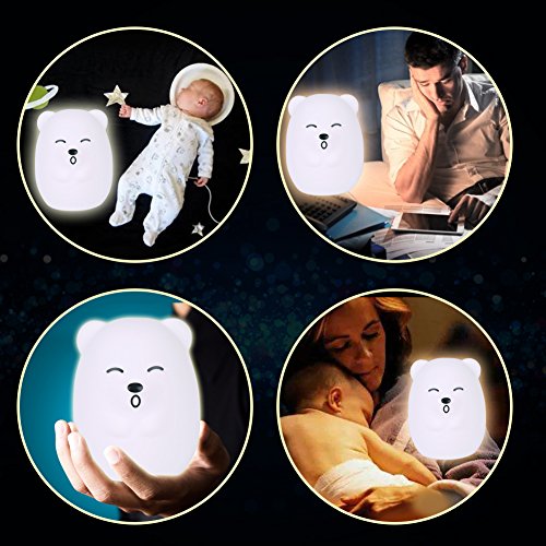 SAFETY GUARANTEED. XFunino bear baby night light is made of BPA-free silicone with CE&RoHS certification, so you don't have to worry about its safety at all.