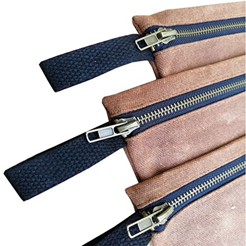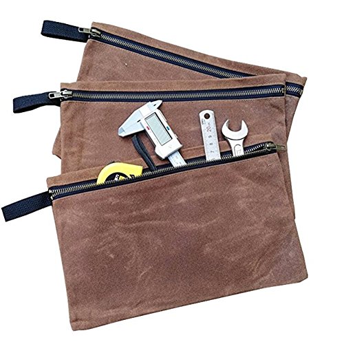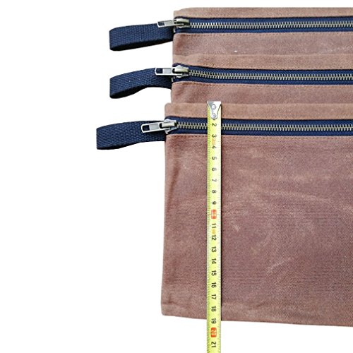 Canvas Tool Bags with Metal Zippers, Multi Purpose Waterproof Smart Storage Pouches-Brown-3pcs