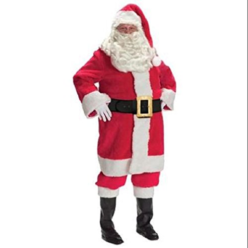 -. Feature : The Father Christmas costume includes a 3/4 coat, pants, hat, belt, boot tops and gloves. / Our Father Christmas costume comes in adult sizes X-Large, XX-Large. / This Santa suit is made of quality red plush with white faux fur trim. / The Santa wig, beard and glasses are not included the Father Christmas costume. / Please note: This item's color may vary due to inherent manufacturing variations or your computer monitor's color settings. The item you receive will be identical or substantially similar to the item pictured in this listing.