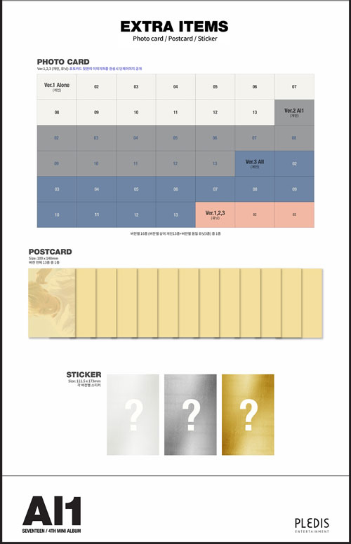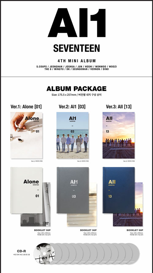 韓国音楽 SEVENTEEN(セブンティーン) - Al1 (バージョン3種の中1種選択/CD+ブックレット96P+フォトカード1種+ポストカード1種+ステッカー1種)+ポスター筒