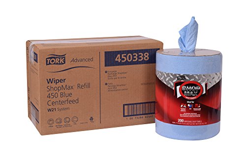Tork Advanced 450338 ShopMax Wiper 450, Centerfeed Refill, 1-Ply, 9.9" Width x 13.1" Length, Blue (Case of 2 Rolls, 200 per Roll, 400 Towels)