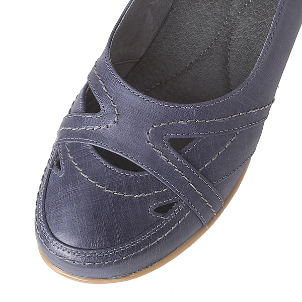 Half 시스 공법을 적용하며 보행시 발의 움직임에 따라 유연하게 움직이고, 에어메쉬 쿠션인솔을 사용하여 신발 내부 통기성이 좋아 착화감이 우수함. 고급 빈티지 가공 가죽을 사용하고 유니크한 절개가 포인트.