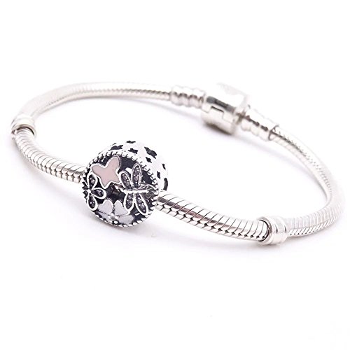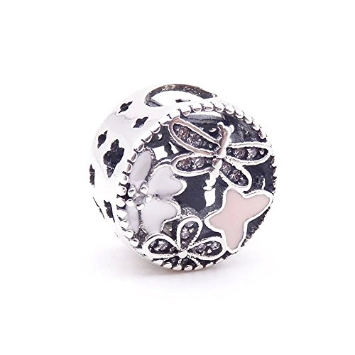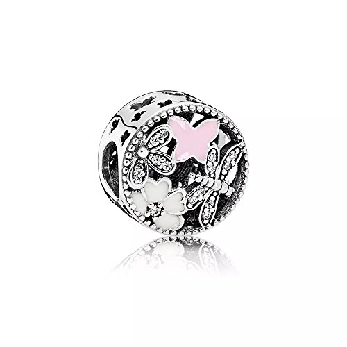Angelbeads Charm Springtime White and Pink Enamels and Clear CZ in 925 Sterling Silver