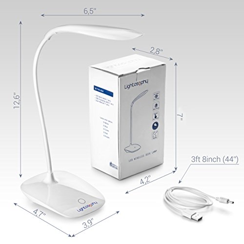 Lightosophy Wireless LED Desk Lamp - USB-Rechargeable, 3-Step Brightness, Minimalist Design Ergonomic Table Lamp, Ideal for Work, Read or Rest