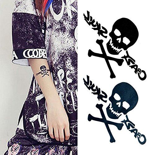 Oottati Small Cute Temporary Tattoo Skeleton Skull Arm (Set of 2)