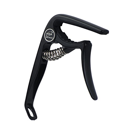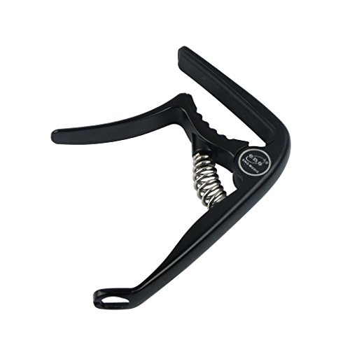 Product Description Feature:* The capo has a great performance for all kind of guitar,can clamp firmly onto most fretboards without buzz or loss of tuning.* With smooth surface and ergonomic handle,it is made of high quality PVC Plastic, lightweight but durable.* Strong spring is made of stainless steel,with great acid resistance,will help hold all of the strings down.* Soft silicone padding helps to protect the strings and fretboard without compromising on the quality of pitch and tone.* Easy to use,quickly and easily released and repositioned without disturbing the tuning. Can be repositioned with just one hand.Including one string pin puller at the end of the handle, which can help you to remove string pins without making damage to your guitarSpecification:Fits for all kind of electric, acoustic and classical guitarMaterial: High Quality Metal Zinc Alloy with steel spring soft silicone pad.Color: BlackPackage include:1 x Packaged Guitar Capo 0