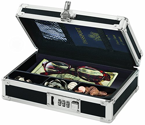 Vaultz Locking Mini Cash Box with Tray, 8.5 x 2.75 x 5.5 Inches, Black (VZ00304)