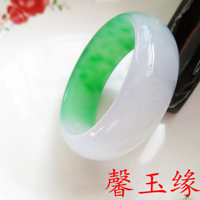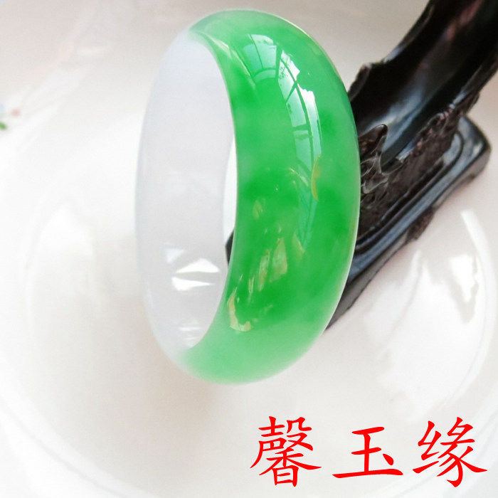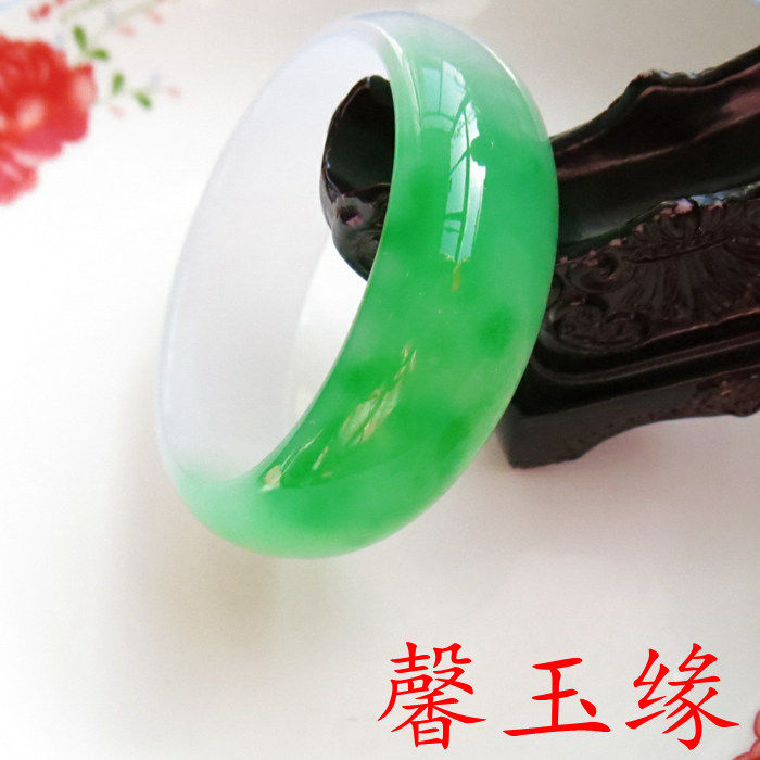 和田玉手镯 新玉种 东陵玉飘花翡翠级加宽玉手镯