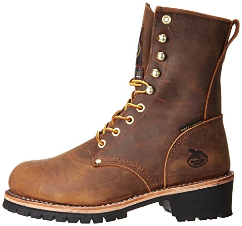 Studio : Georgia Publisher : Georgia Binding : Apparel Product Description The Georgia boot steel toe waterproof insulated logger work boot has all the performance features you want in your work boot. This men's boot has a steel toe to protect you from falling objects. The footwear meets astm standards for protective toe and for electrical hazard resistance. The steel toe boot also is a waterproof boot. It has a waterproof system that guarantees your feet remain dry. Your feet also stay warm because this is an insulated boot. You get 400 grams of 3M thinsulate insulation. It's enough insulation to keep you warm during cold outdoor work, but not so much insulation that your feet get too warm while you're active. This logger boot is made of full-grain leather. It has a leather welt and is assembled with Goodyear welt construction for long-lasting quality. The logger outsole on this boot gives you the traction you to keep you on your feet. The logger outsole grips the terrain and resists abrasions and slips. Inside this waterproof work boot is a cushioned pillow insole for comfort, a mesh lining to fight sweaty feet and a steel shank to support your arch. Get a construction boot that can take you through cold, rain, mud and hazardous conditions. Get this logger work boot. 0