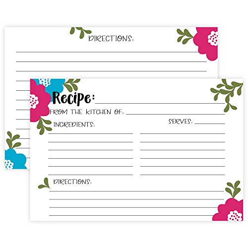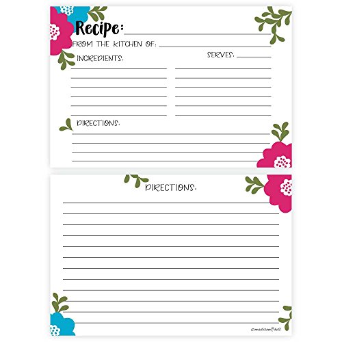 Madison Floral Recipe Cards (Set of 50) Double Sided - 4 x 6 Cards