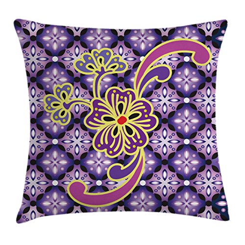 (Ambesonne)/Bedding Bath/Bedding/DIRECT FROM USA/Batik Throw Pillow Cushion Cover by Ambesonne, Macro Flower Petals on Foreground Chained Bound ...