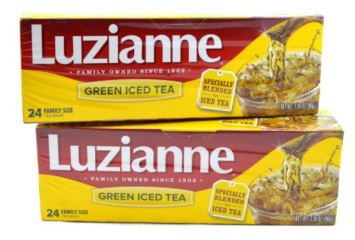 -. Binding : Misc. -. Brand : Luzianne -. EAN : 0734872631085 -. Feature : Multi-Pack - 2 Packages of 24 Family Size Green Iced Tea Bags / Each Package Brews 6 Gallons of Tea - A Total of 12 Gallons or 96 16 Ounce Servings / Zero Calories Per Serving / A Tasty, Refreshing and Healthy Drink -. IsAdultProduct : 0 -. Label : Reily Foods Company -. Manufacturer : Reily Foods Company -. PackageQuantity : 2 -. ProductGroup : Grocery -. ProductTypeName : GROCERY -. Publisher : Reily Foods Company -. Studio : Reily Foods Company -. Title : Luzianne Green Iced Tea Bags, Family Size - Multi Pack of 2 Packages, Each Package Containing 24 Tea Bags (Total of 48 Family Size Green Tea Bags) -. UPC : 734872631085