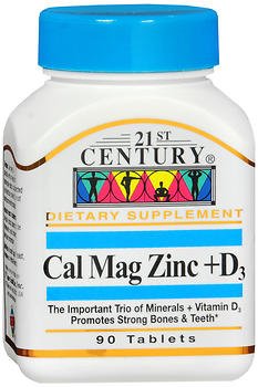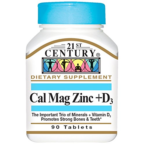 Studio : 21ST CENTURY HEALTHCARE Publisher : 21ST CENTURY HEALTHCARE Binding : Health and Beauty Product Description Calcium, magnesium and zinc plus vitamin D3 promotes strong bones and teeth.* This important trio D3 also helps to maintain normal heart and muscle functions.* Offers you 100% of recommended daily value in three easy-to-swallow tablets. Gluten free. No added sugar, yeast, preservatives or artificial flavors. *These statements have not been evaluated by the Food and Drug Administration. This product is not intended to diagnose, treat, cure, or prevent any disease.Directions: Take three (3) tablets daily with any meal for maximum daily results, or as directed by your healthcare provider. Do not exceed recommended dosage. Store at room temperature.Ingredients: 3 Tablets: Vitamin D3 (Cholecalciferol) 400 IU; Calcium (Carbonate) 1000 mg; Magnesium (Oxide) 400 mg; Zinc (Oxide) 15 mg; Cellulose; Stearic Acid; Croscarmellose Sodium; Magnesium Silicate; Polyvinyl Alcohol; Silicon Dioxide; Titanium Dioxide; Magnesium Stearate 0