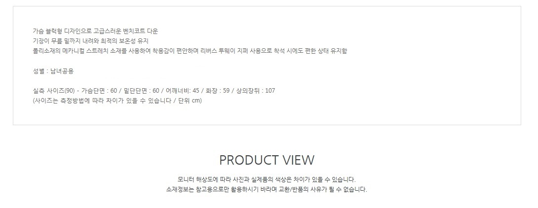 본 상품은 덕다운 제품입니다