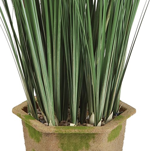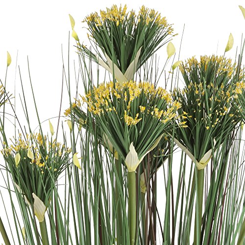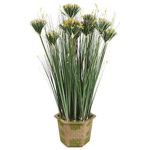 Breeze Point 37" Lifelike Potted Artificial Onion Grass Plant in Decorative Pot with Real Stones, Yellow (P00015S)