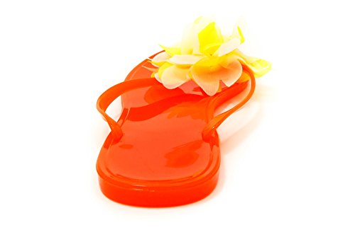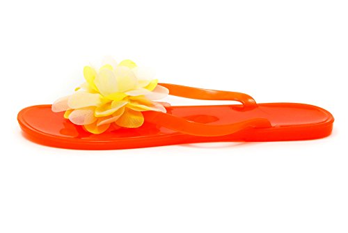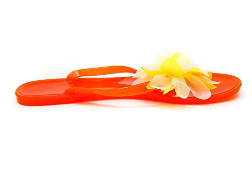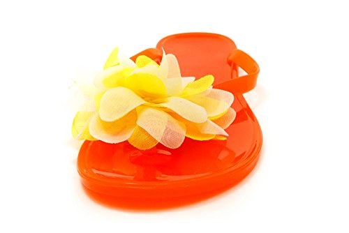 Nufoot Tangerine Flip Flops with White/Yellow Blossom