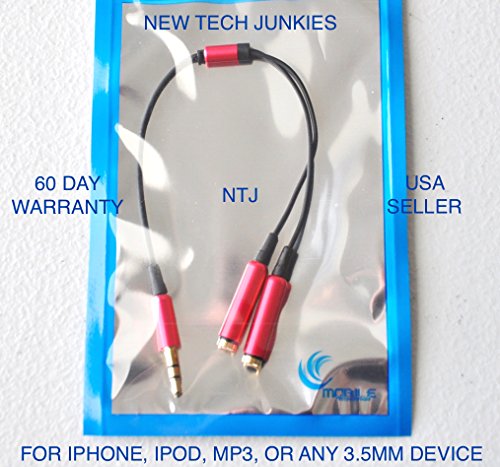 NTJ Splitter Metallic 3.5mm (Male to Twin Female) Auxilliary Cable (Red)