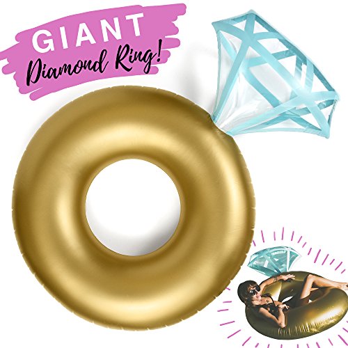 Giant Pool Float - Gold Diamond Ring Shape | 50" Diameter Inflatable Water Floats for Pool Party - by Fractal