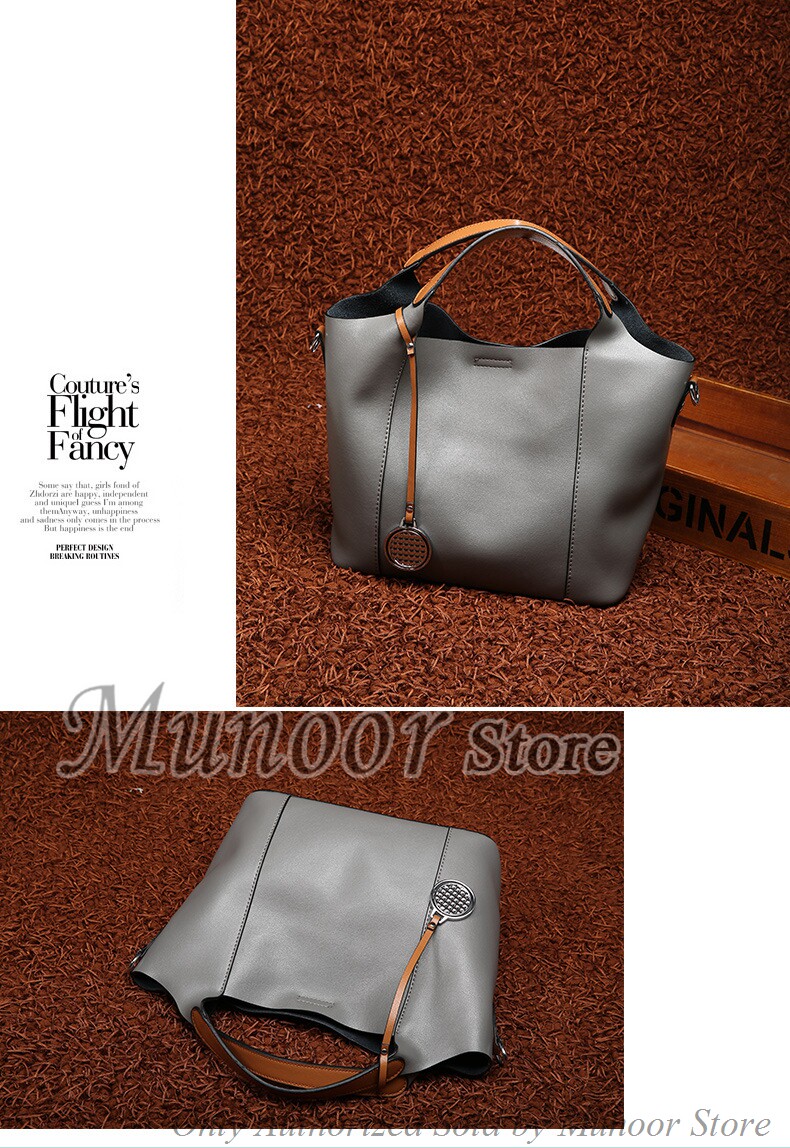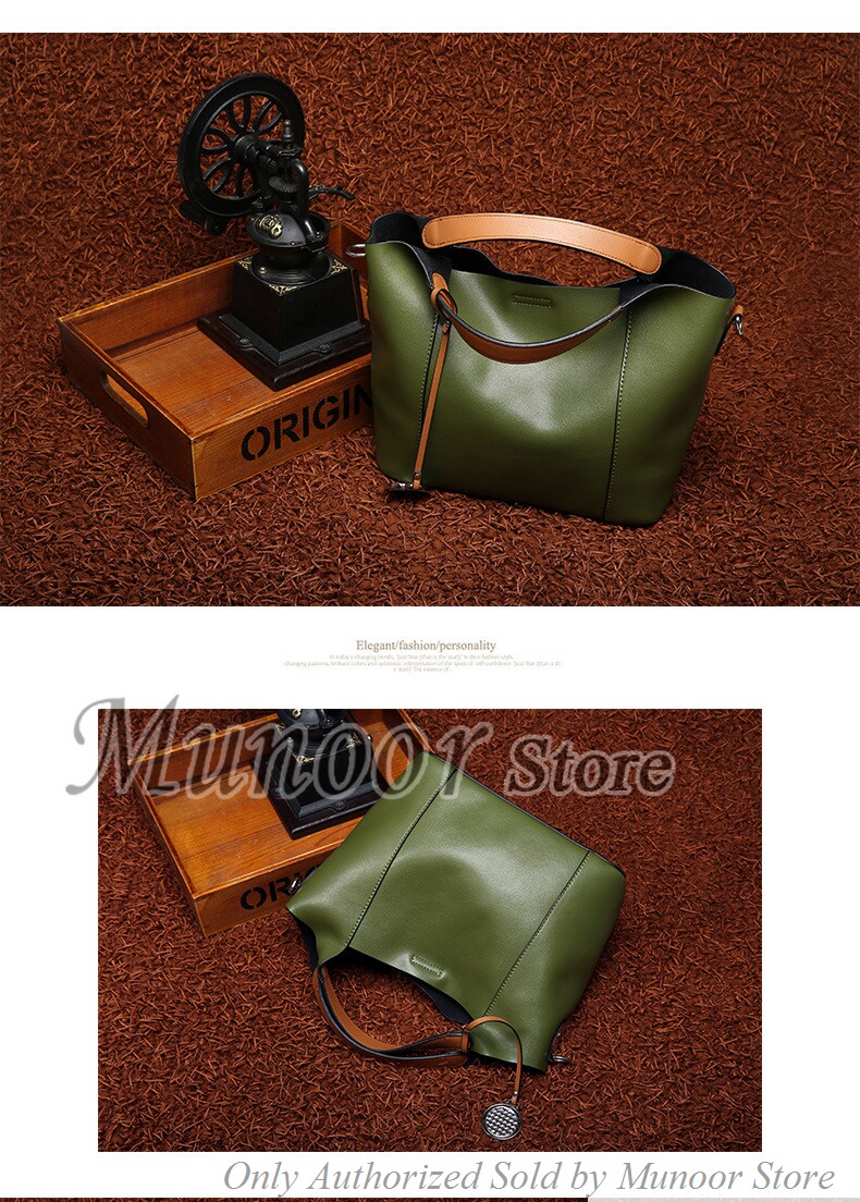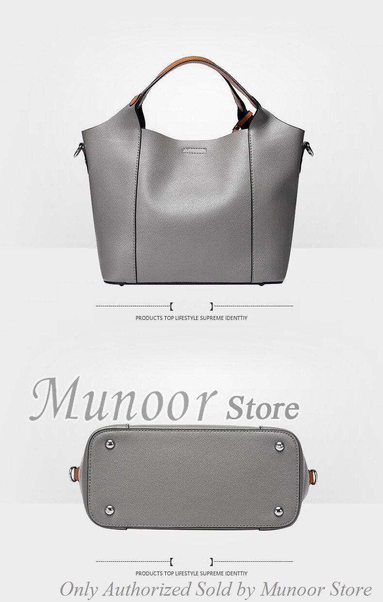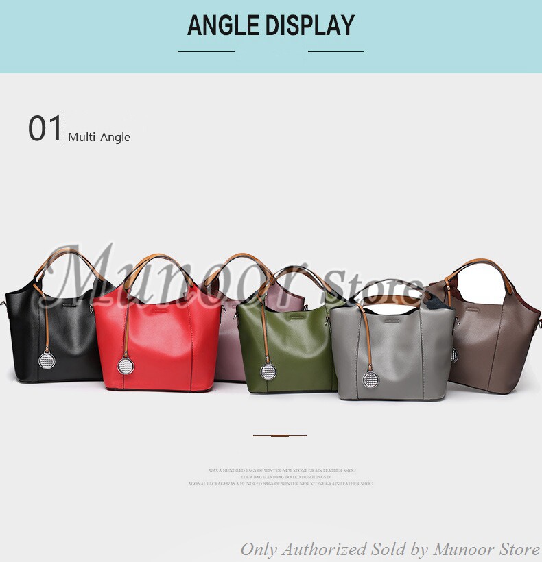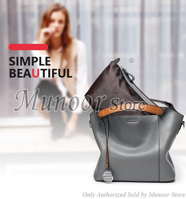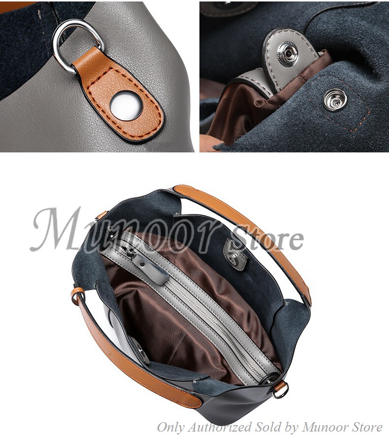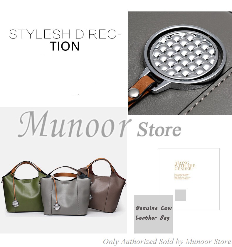 This multifunctiona tote bag is made by high quality cow leather, with polyester as lining.