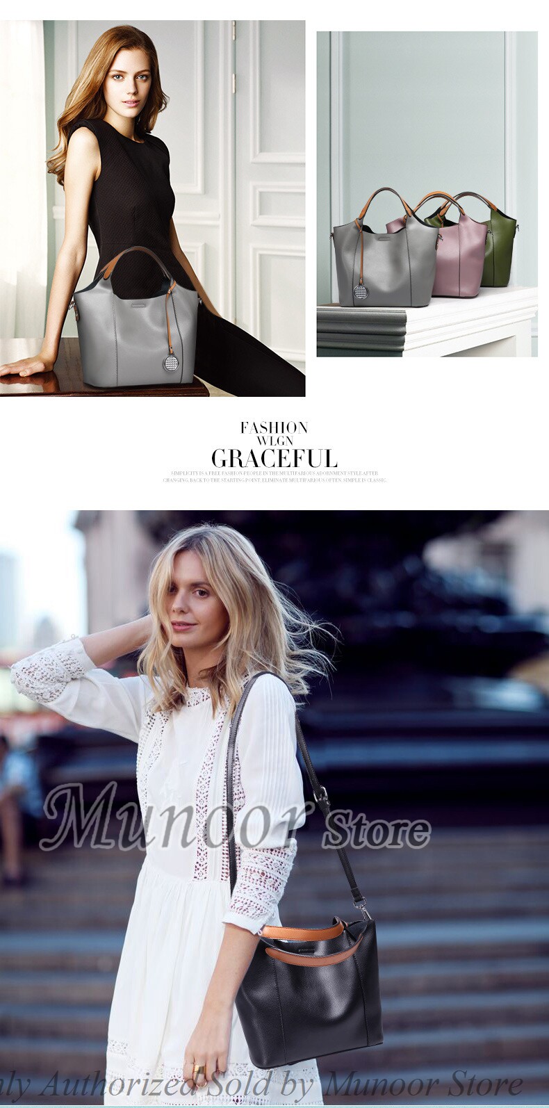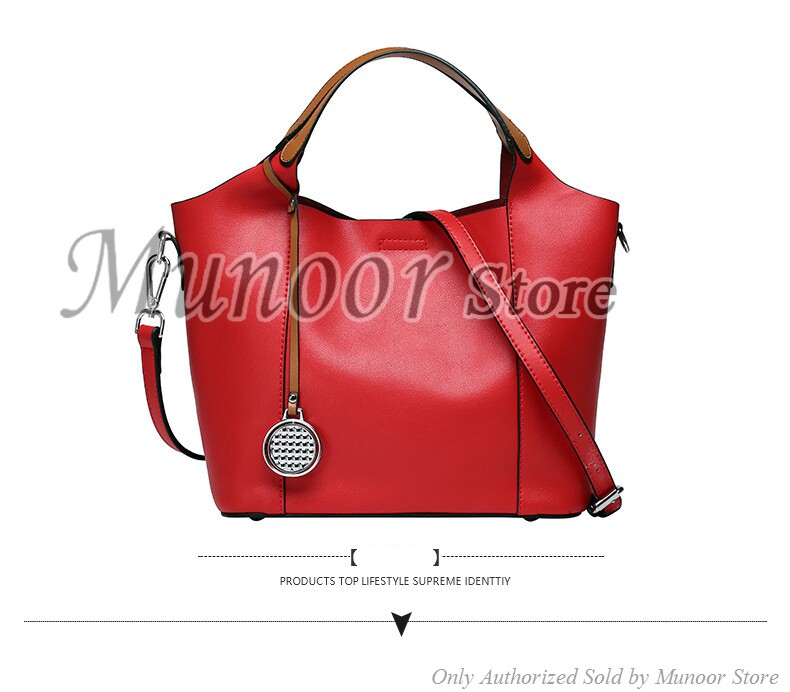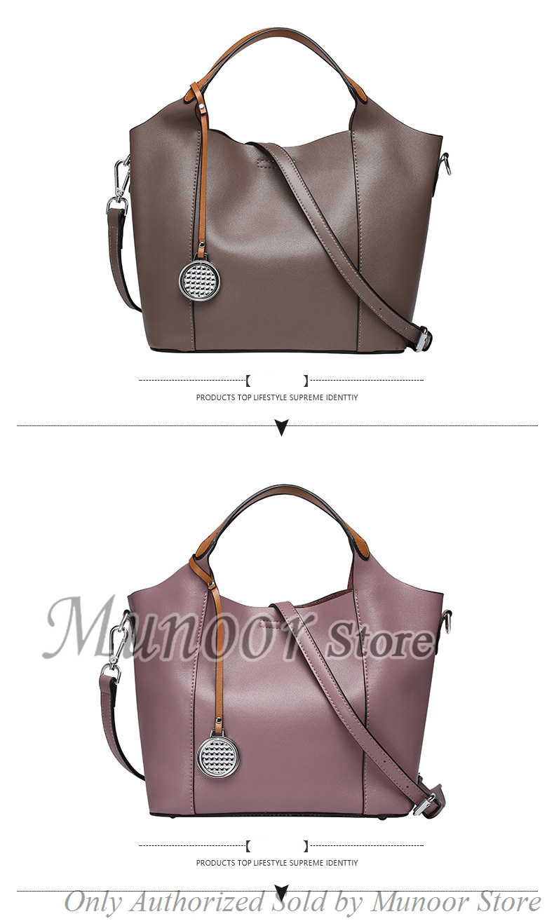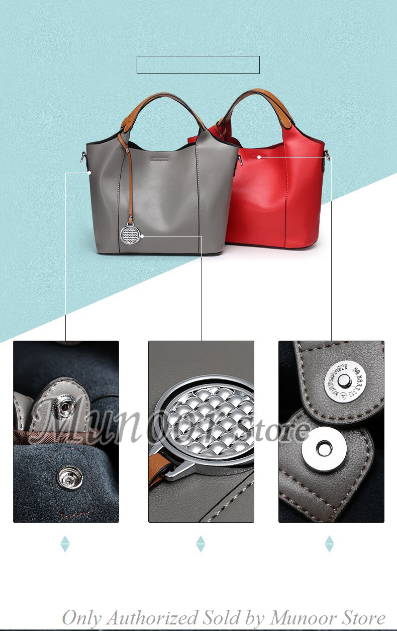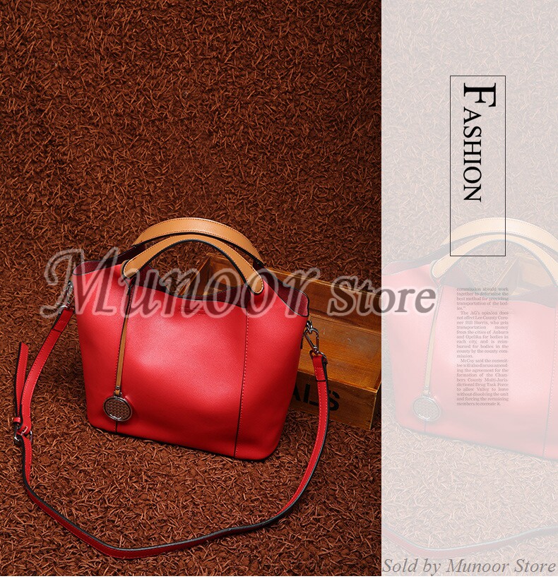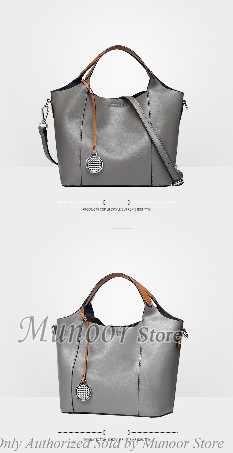 This multifunctiona tote bag is made by high quality cow leather, with polyester as lining.