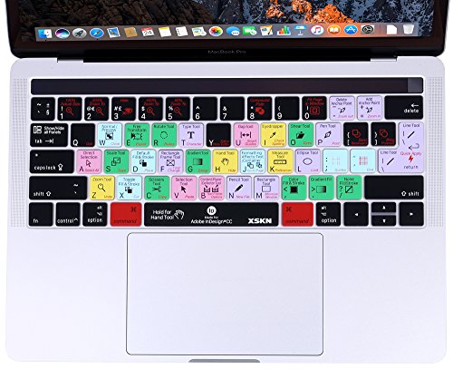 -. Feature : Provide English shortcut designs for 2017 released Adobe InDesign CC software, suit for macbook user, especially those do not familiar with hotkeys, help to increase your work efficiency / Each XSKN silicone skin is heat molded to ensure a perfect fit then each color is pains taking hand screened using silicone paint which is heat fuses into the silicone keyboard skin to become one, making it durable, crack proof and washable / XSKN, the inventor of silicone keyboard skins and continues to search for the best quality silicone to ensure that organic cashmere feel. XSKN hand screen keyboard skins is a craft that cannot be duplicated by machines / Soft, ultra-thin, and washable. Elaborately lower key height design to give you better type feeling, especially after long time typing / Design to fit ONLY - 2016 MacBook Pro 13-inch A1706 with TouchBar & MacBook Pro 15-inch A1707 with TouchBar (US and EU layout)-- Release October 2016