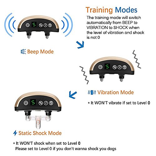 Friendly Tip: 1. Test which sensitivity level your dog best responds to from the lowest sensitivity gear 1, and move up the scale until the collar elicits a response from your dog. 2. If you don't want to use shock mode, you can adjust the level of shock to 0 or choose another product we provided - NO Shock Version (Please search: B075K7LVCS)