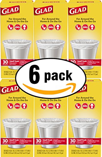Glad Small 4 Gallon Trash Bags, 30 Per Box, Pack of 6 (Total of 180 Bags)