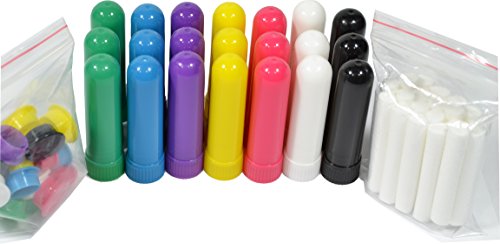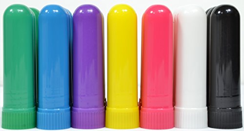 - 21 COMPLETE INHALERS 7 GORGEOUS COLORS : It comes in 7 gorgeous colors, 3 of each color, packed professionally, caps and cotton wicks are in its own zip lock bag, packed in master zip lock with nasal inhalers and caps.