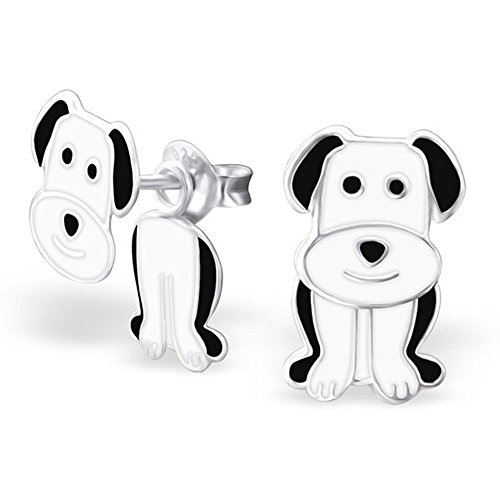 -. Title : Black White Dog Earrings 925 Sterling Silver Children's Silver Earrings Post Stud (E24628)